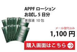 APPFローションは、フラーレン(ラジカルスポンジ)と両親媒性ビタミンC誘導体APPS(アプレシエ)配合した オールマイティーな美容液です。