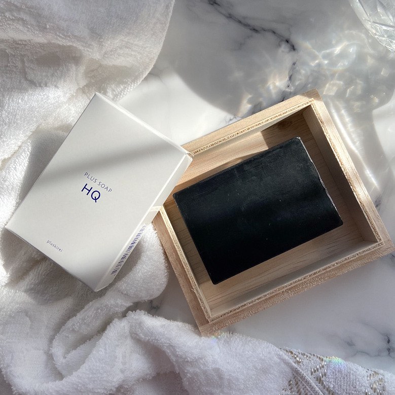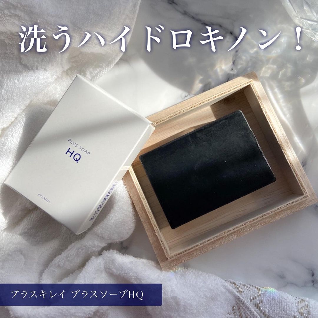黒い見た目がインパクトのある『プラスキレイ プラスソープHQ』ハイドロキノン専門店が研究・開発した全身にも使える「本当に実感できる石鹸」です。