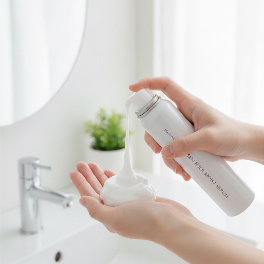 炭酸(※1)を「高濃度(※2)に15,000ppm(※3)」、「炭酸(※1)100%使用」の泡状炭酸(※1)美容液です。美容成分が溶け込んだとろりと濃厚な美容液が、乾燥を感じる肌をもっちりうるおいで満たします。 ナイアシンアミド(※4)、エクソソーム(※5)、レチノール(※6)など、大人の肌悩みに嬉しい美容成分と、セラミド(※7)、グルタチオン(※8)などの厳選した保湿成分を贅沢に配合しました。 極小泡の炭酸(※1)のため「パチパチ」「しゅわしゅわ」などの強い刺激はありません。肌に馴染ませると美容成分と混ざり合い、炭酸(※1)泡はとろみの美容液に変化し、美容成分をじんわり角質層まで届けます。 ※1:二酸化炭素(噴射剤) ※2:当社製品比 ※3:計算上の数値 ※4:肌を整える成分 ※5:ヒト脂肪由来間葉系細胞エクソソーム(肌を整える成分) ※6:パルミチン酸レチノール(肌を整える成分) ※7:ラウロイルグルタミン酸ジ(フィトステリル/オクチルドデシル)(保湿成分) ※8:保湿成分