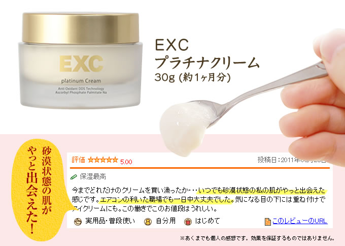 EXCプラチナクリームが届きました 翌朝実感 宣伝になっていた意味がよくわかりました 本当でした 夜塗って、朝実感できました 超潤ってる 化粧のノリが全然違いました しっとり感が半端ない感じ いいクリームですね 美容コスメのエクセレントメディカルファンサイト参加中 2013/09/18