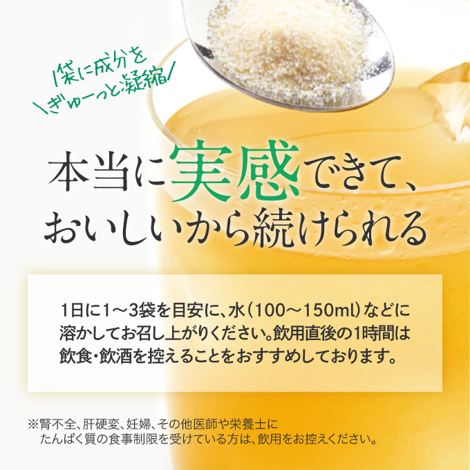 お召し上がり方 1回あたり1包を目安に、約100〜150mLの水などに溶かしてお召し上がりください。