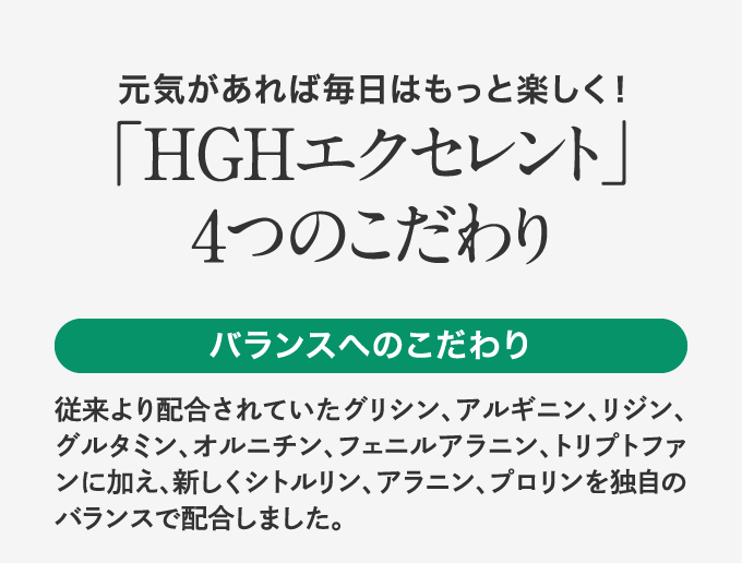 商品名 / 内容量 HGHエクセレント / 15g×5袋
