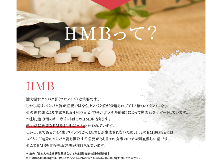 HMBca45,000mg配合の燃力活サプリ。