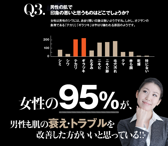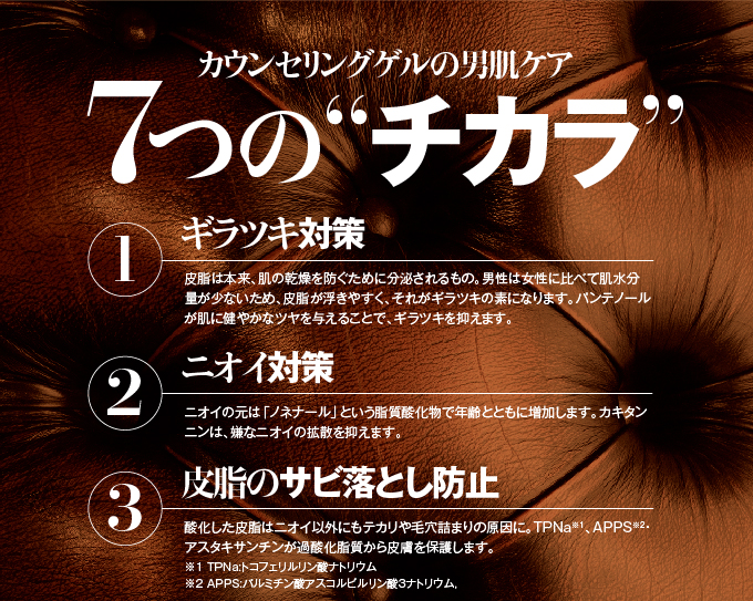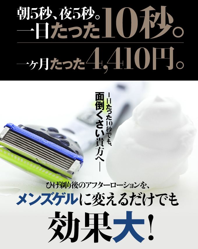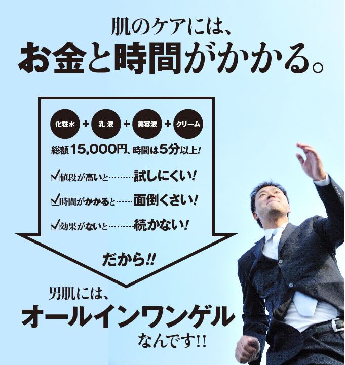 ギラツキ、匂いなど男性特有の肌悩みにピンポイントにおこたえするオールインワンゲルです。