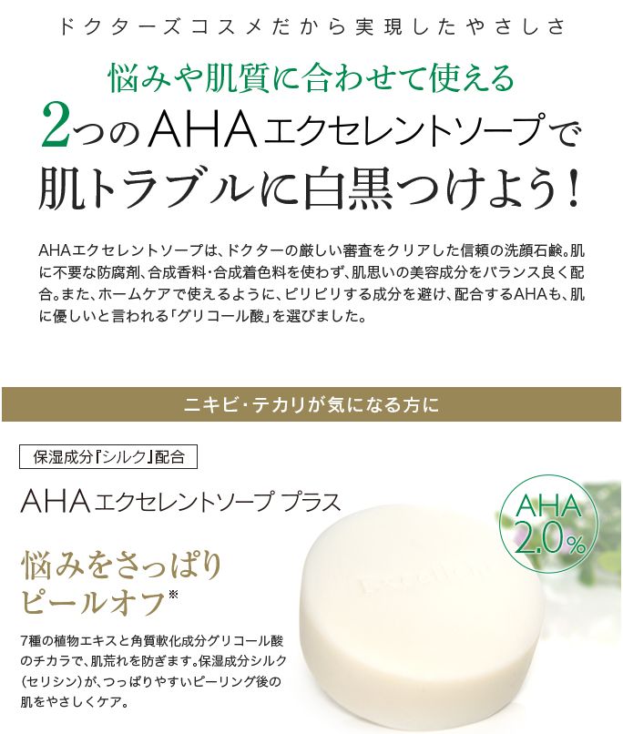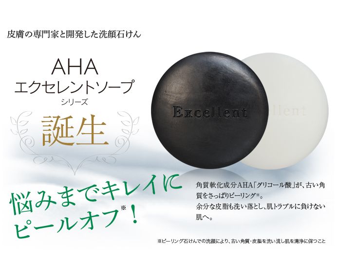 AHA2.0%グリコール酸配合のピーリング石けん。