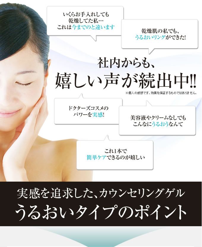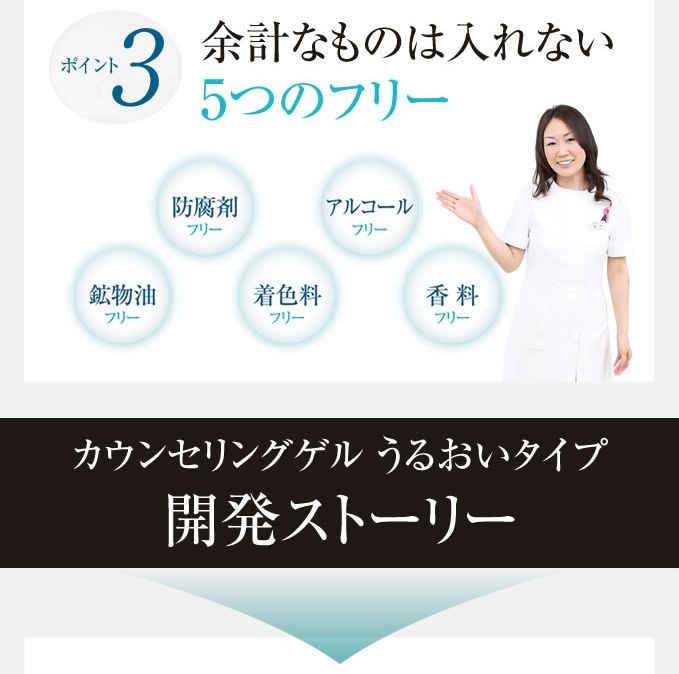 肌の悩みにピンポイントにおこたえする『カウンセリングシリーズ』のオールインワンゲルです。スキンケアの基本である「保湿」に徹底的にこだわり、肌にやさしい成分のみを使用した低刺激設計です。