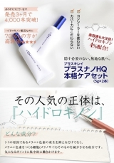 プラスキレイのプラスナノHQのクリームは、話題のハイドロキノンを4%配合したポイント集中ブライトングケア用のクリームです。ハイドロキノンをナノカプセル化した事により、肌の奥深くターゲットポイントまで高濃度でのアプローチを実現しました。いつものお手入れにプラスするだけで、白絹のような無地肌へと導きます。