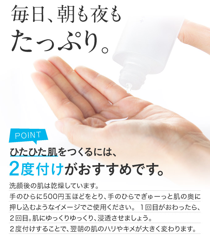 Wアプローチでふっくら、しっとり。うつくしい白肌へ導きます。