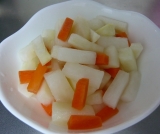 昨日の夕食に大根と人参の甘酢漬けを作りました(^▽^) サクサクで、ポリポリで、甘くて、お酸が効いてるからさわやかで、どんどん食べちゃいました♪ 調味料として使ったのはこちらのす漬一発♪ 博多グルメ くいもんやから届いたので、さっそく使ってみたのです(^∇^) す漬一発… 2012/02/08