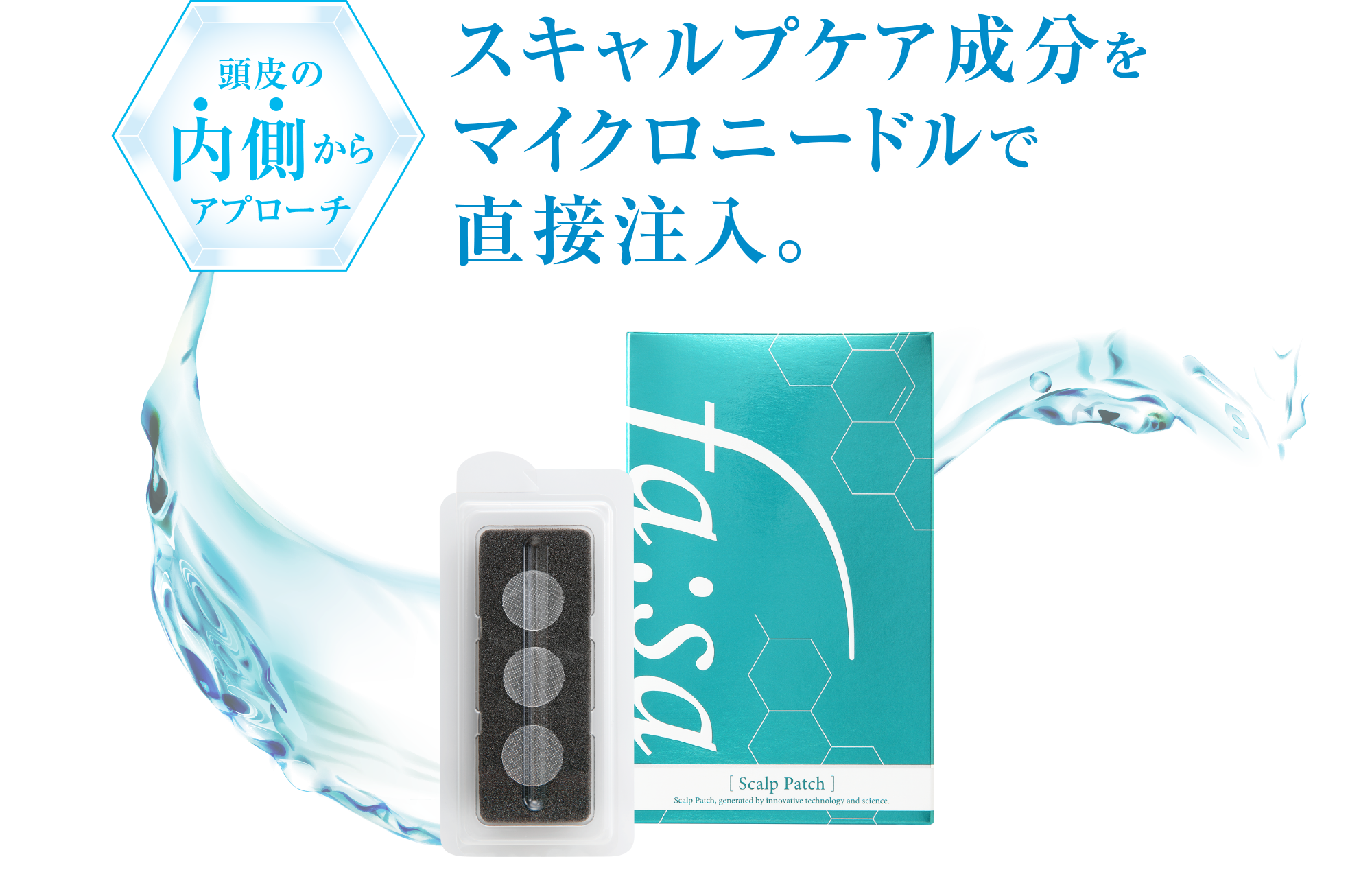 スキャルプケア成分を、マイクロニードルによりダイレクトに皮膚に注入。