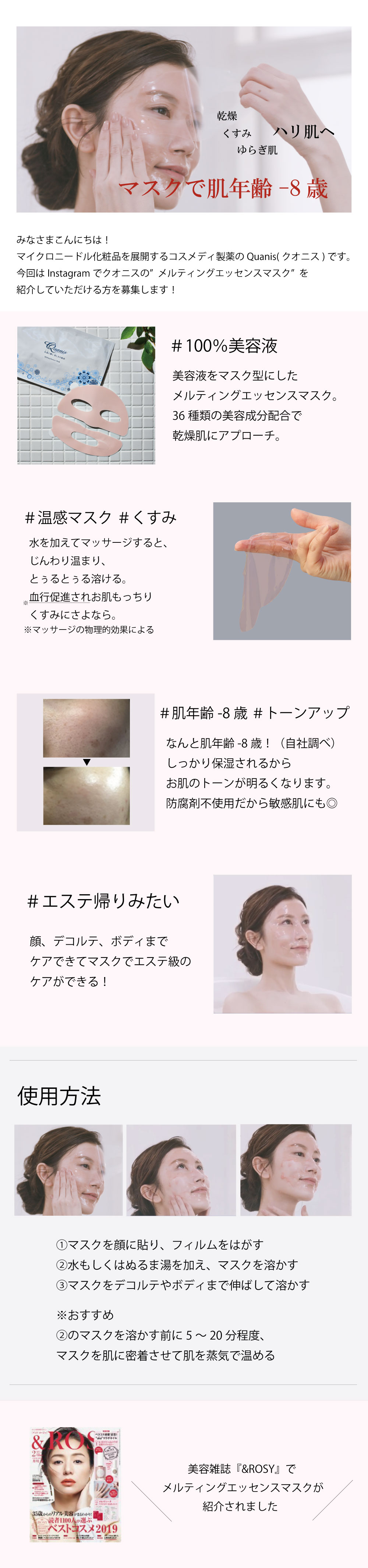 今回はクオニスのメルティングエッセンスマスク(溶けるマスク)をお使い頂き、
