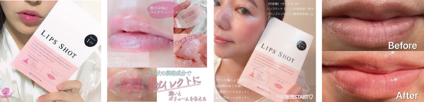 「リップショット」は約800本の美容成分でできた針(マイクロニードル)のついたシートを唇に貼ることで、唇の角質層へ美容成分直接届ける新発想のリップケア商品です。付属のプランプエッセンス(美容液)を塗るとマイクロニードルとの相乗効果でぷるんとした唇に仕上がります。