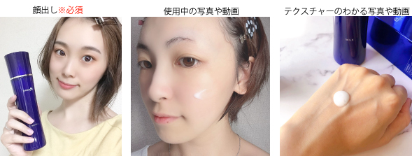 ■商品到着後1週間以内にご使用いただき、写真とともに使用感やテクスチャーなど、具体的にご記載ください。