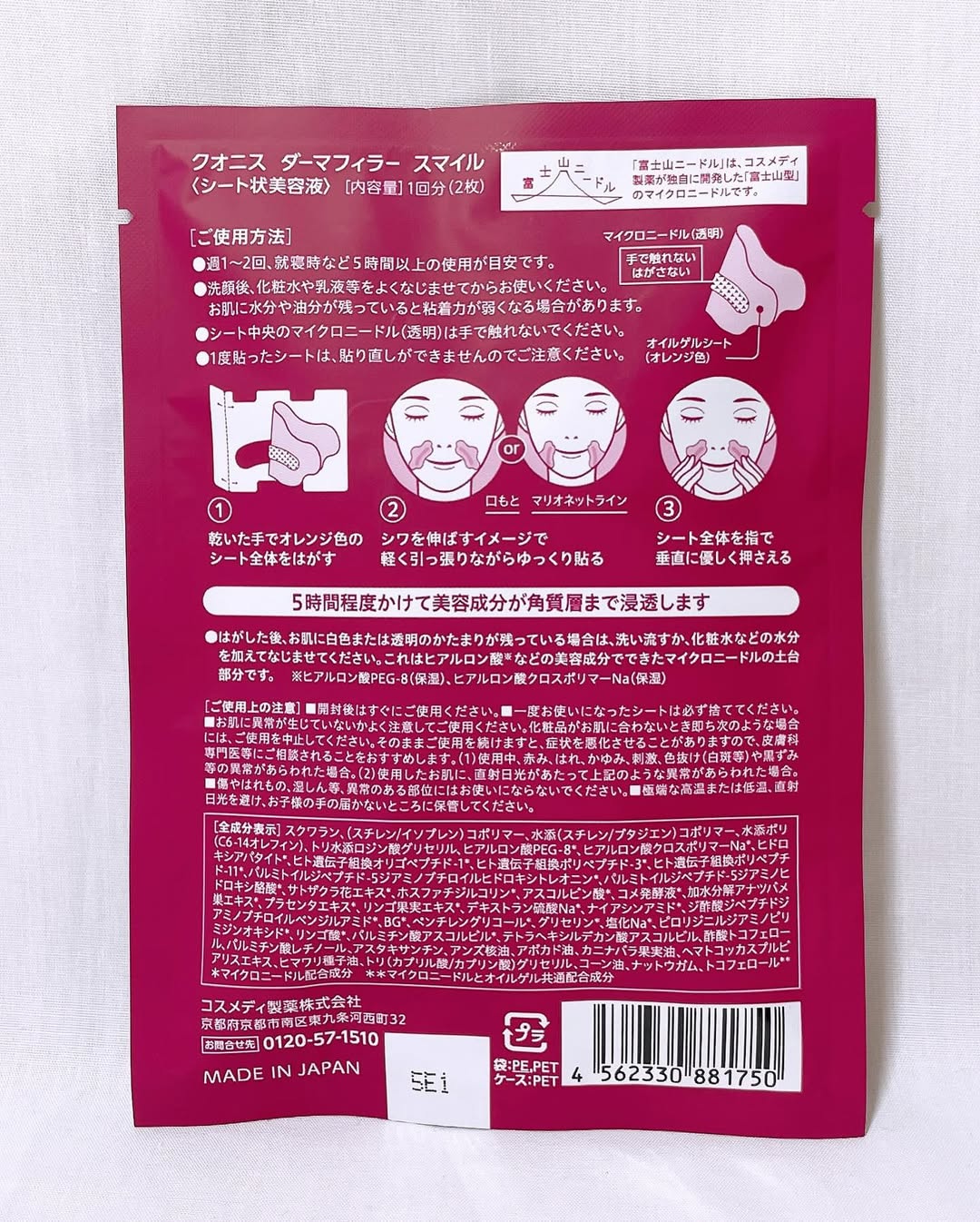 【モニター】 クオニス 『ダーマフィラースマイル』 𓈒𓂂𓂃◌𓈒𓐍 ほうれい線まわりの悩みに特化した 超高密度マイクロニードル!! ヒアルロン酸などの美容成分をミクロの針状に結晶化した マイクロニードルが付いたシート状の美容パッチ 業界最多 約4,200本※1 の針で、 ほうれい線まわりにしっかり濃く成分を届けます!! ※1 1回分あたり 《使い方》 STEP① ゆっくりシートをはがす 透明フィルムからオレンジ色のシートをはがします STEP② しっかりお肌に貼る オレンジ色のシートの粘着面を肌に当て、 シートを押さえて密着させます STEP③ じっくり浸透*させる 5~6時間かけてゆっくり浸透*するので、 貼ったままお休みになって、翌朝はがします * 角質層まで ✤ シートの形状がほうれい線にフィットさせやすい✨ 貼った直後は少しチクチク感があったけど、 痛みを感じるほどではなく気持ちよいくらいかな〜 密着力もあり貼ったまま寝ても 翌朝はがれることもありませんでした! ほうれい線が目立つタイプなので ふっくらな口もとになれて良かったです☺️ 𓈒𓂂𓂃◌𓈒𓐍 #PR #コスメディ製薬株式会社 #quanis #クオニス #ダーマフィラースマイル #コスメディ製薬 #マイクロニードル #富士山ニードル #ほうれい線まわり #乾燥肌 #ハリ不足 #マイクロニードルコスメ #マイクロニードル化粧品 #針コスメ #シワ #年齢ケア #エイジングケア #monipla #quanis_fan ₂₀₂₅ ₁₅₄