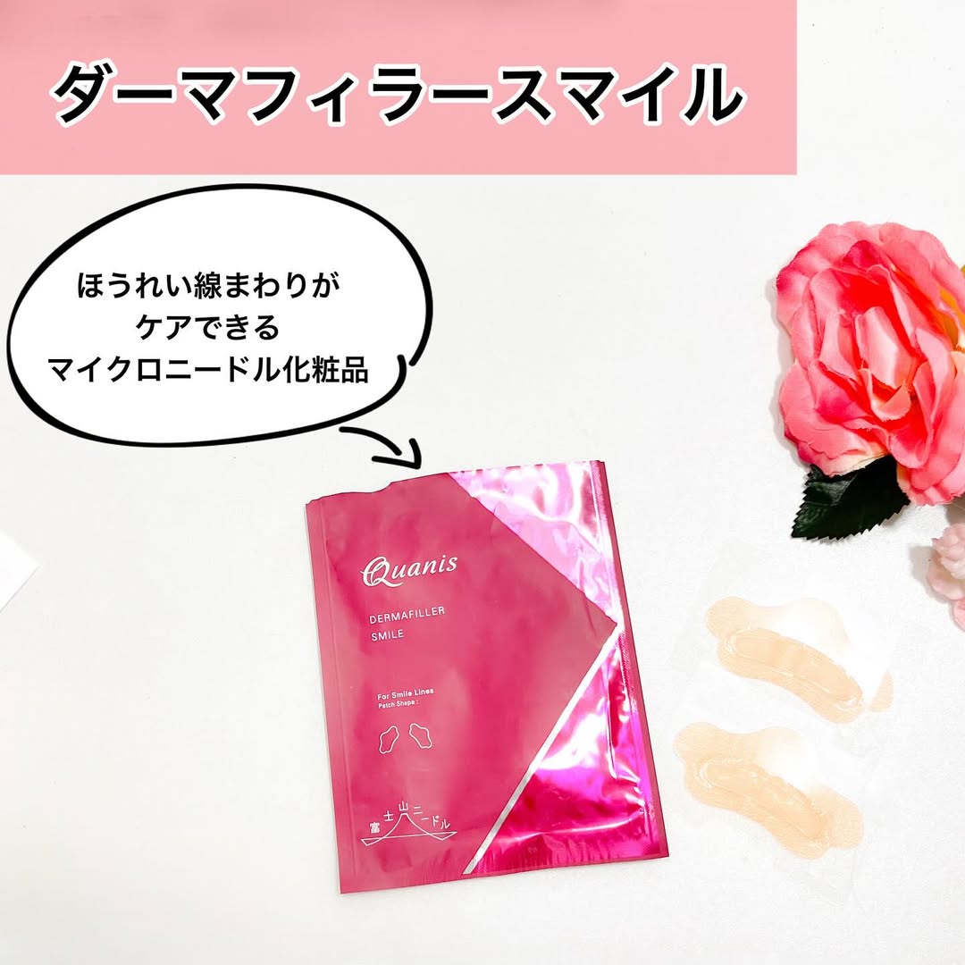 ダーマフィラースマイルは、 ほうれい線まわりがケアできるマイクロニードル化粧品「ダーマフィラー スマイル」。 塗るだけでは届かない美容成分を針状に結晶化し、 貼るだけで直接角質層まで美容成分を届けてくれるそう。 肌色のシートが2枚入っています。 ほうれい線に添いやすいカーブした形状です。 透明フォルムを剥がして、 左右のほうれい線部分に貼り付けると、 しっかり密着してくれます。 1回分あたり約4,200本※1の針が 肌の角質層までしっかり成分を注入※2する特徴があるので 集中ケアに良さそうですね。 #PR #コスメディ製薬株式会社 #quanis #クオニス #ダーマフィラースマイル #コスメディ製薬 #マイクロニードル #富士山ニードル #ほうれい線まわり #乾燥肌 #ハリ不足 #マイクロニードルコスメ #マイクロニードル化粧品 #針コスメ #シワ #年齢ケア #エイジングケア #monipla #quanis_fan