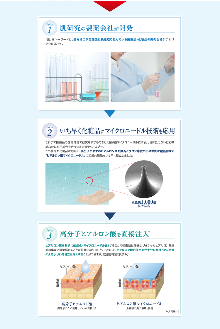 肌研究専門の製薬会社として古都京都の自社ラボにて、肌浸透に関する研究開発を日々重ねています。原材料や成分にこだわり、医薬品レベルの管理のもと、ひとつひとつ丁寧に生産をしております。当社特許技術であるマイクロニードルをさまざまな化粧品に応用しています。「肌」の専門家として、皮膚浸透に関する新しい視点の研究成果から生まれた、今までにない全く新しいコンセプトの化粧品をお届けしています。