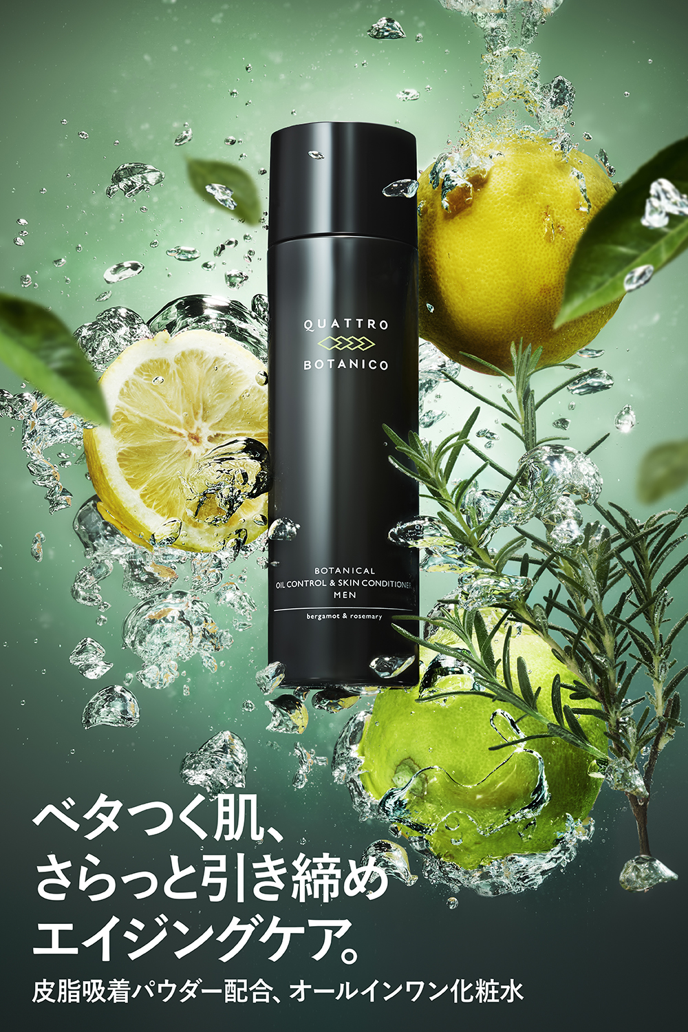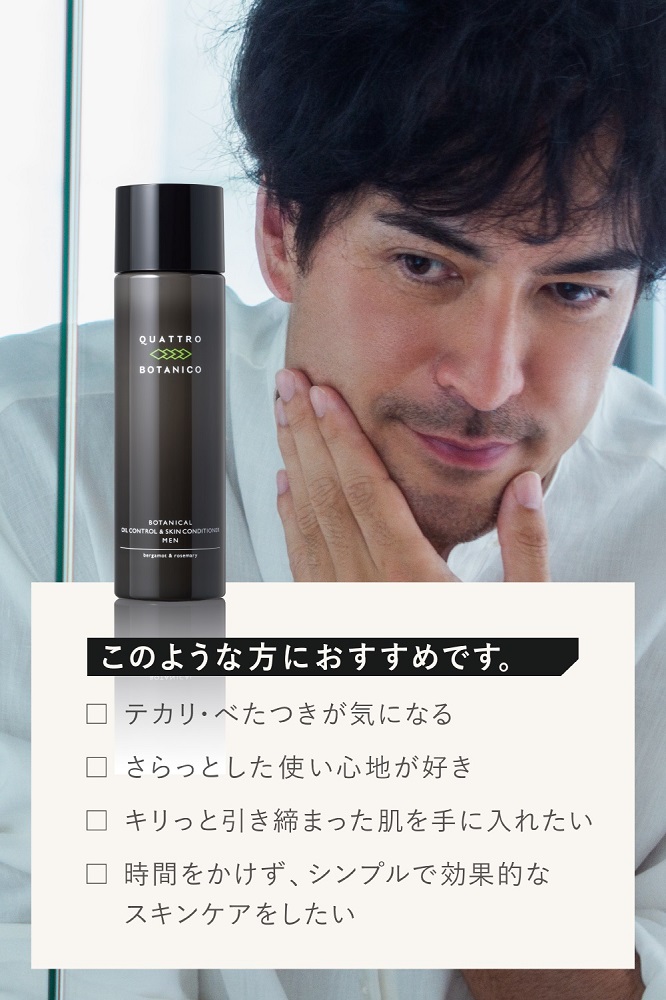 多くの男性が気にするテカリ・べたつきをケアし、ハリを与えてキリッと肌を引き締める。