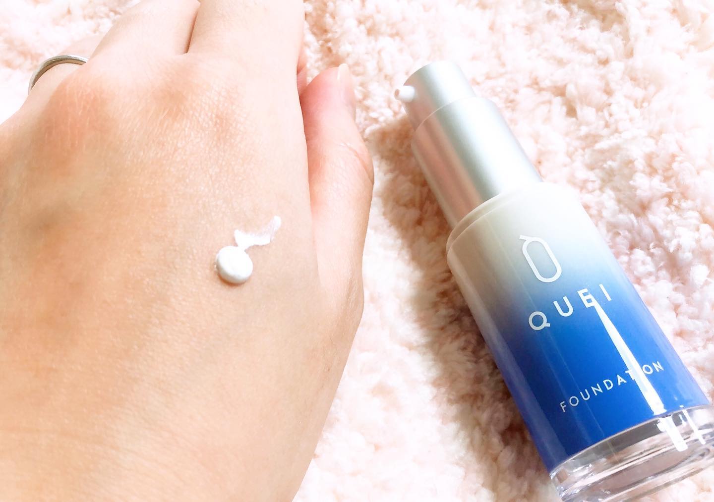 QUEI color change foundation 今話題の「色が変わる」ファンデーション😳❤️ 最初白なのに伸ばすと色がかわりました👏 こういうファンデーション初めて使った🥰 肌の色にもあっていて 使いやすいです😋 #QUEI #クエイ #SPF50plus #オールインワン #シミカバー #女優肌 #monipla #quei_fan