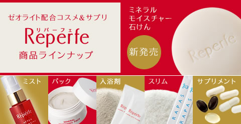 RAPAS株式会社:Reperfe(リパーフェ)ファンサイトは「素肌を美しく磨きをかける事が、女性の本当の美しさ」 と考え、ゼオライトをベースとするサプリメント、コスメティックシリーズReperfe(リパーフェ)をご紹介するサイトです。