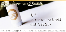 最新成分フィフローBTXを15%から25%に高配合。『従来のバルーンクリームをよりグレードアップ 最高級なテイストがさらに納得と満足を演出』『目元・口元・ほうれい線の小じわの目立ちをサポート、ハリとと弾力のある滑らかなお肌へ』