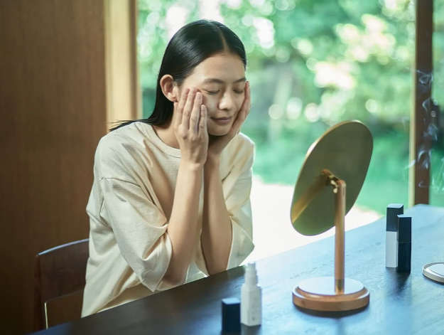 2.気になる部分または顔全体に指の腹でやさしく丁寧になじませます。