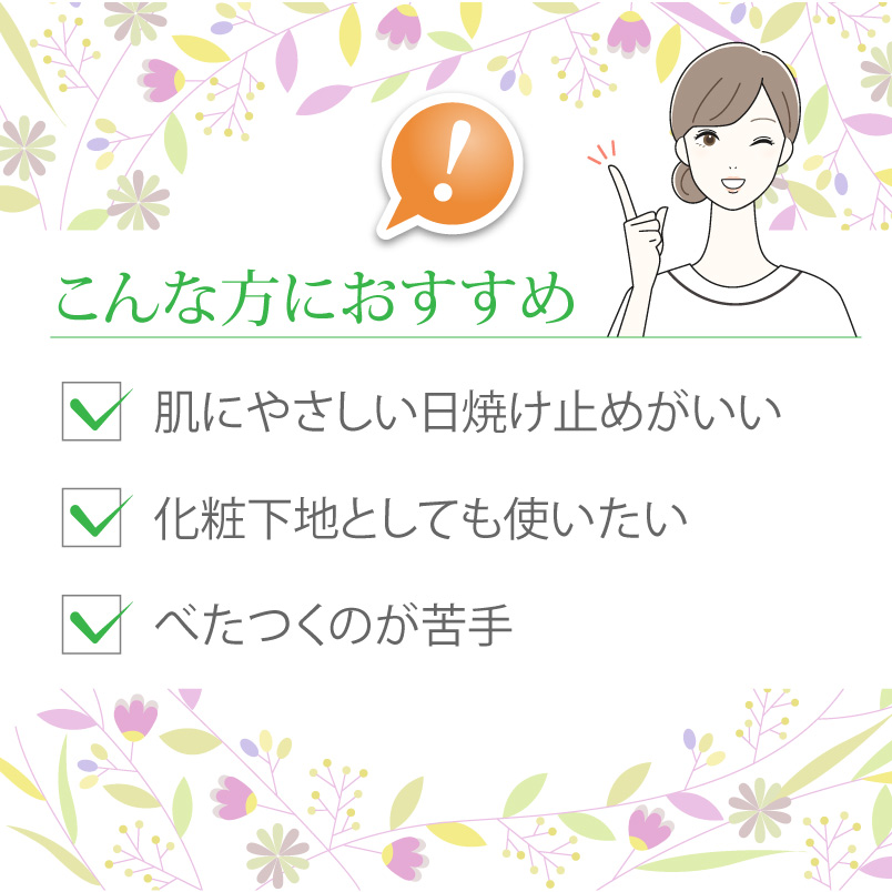 肌に余計な負担をかけず、白浮きしないナチュラルな仕上がりで肌になじみやすく、化粧下地としてもご使用いただけます。