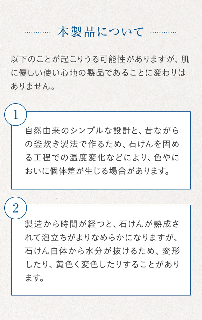 ※石油系合成界面活性剤、パラベン等(防腐剤)を含む旧表示指定成分、合成香料、合成着色料、鉱物油(パラフィン等)不使用