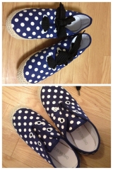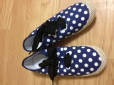 GALSTARさんからスニーカーが届きました 夏らしいマリンカラー 縁には麻がふちどられていますー!履き口が大きめで履きやすい靴紐が太めなのでリボ 2014/07/07
