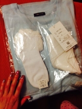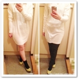 こちらは ニットワンピースと カチューシャと ソックスの三点セット♪ 今回私が当選した色は クリームピンクです ニットの長さは 短すぎず長すぎず ちょうどいい丈感です♪ 薄手で下着が透けてしまうので 中にインナー着用が必須です!! インナーなしで 着れればいいのになあと その点に関して… 2014/03/31