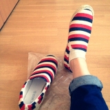 エスパドリーユスリッポンスニーカー届きましたーびっくり!!トリコロールです♡サイズは3Lです245cm、3E以上でも入りました!!よかった♡思ってたよりも、足の甲が隠れました伸びるので、履きやすい方だと思います♪そして、幅がある人の悩み…エスパを履くと足の形がモロに出てしまって可愛くない!とい… 2014/06/23