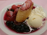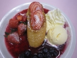 新宿タカシマヤタイムズスクエア レストランズパークで開催された とちおとめストロベリーフェア 開発試食会 5つ目はデザート 11月15日にオープンした ハワイアンダイニングのモアナキッチンカフェ たっぷり苺のパンケーキ トッピングやソースだけではなく、 生地にも… 2013/12/21