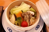 御膳内容は2連松花堂・野菜セイロ・水たき・とり釜めし