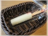 まず薄皮を手にとり、甘味噌を皮の内側にぬり、お好みに合わせてネギを加えて、