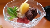 メインは牛の柔らか煮が和スイーツ・桜もちとコラボした一品。