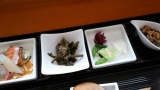 おばんざい、お刺身、白ごはん、お椀、香の物、佃煮、甘味付き。