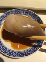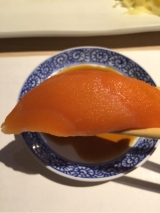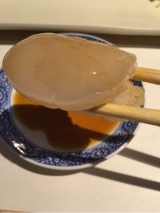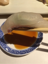 いかそうめん with 宝川 生原酒 「いかそうめん」は、うにを溶かして “うにだれ” で 味わうのが政寿司流! その身にうにだれが絡んだ途端、一気に小樽の気配が漂います♪ 『宝川 生原酒』のフレッシュでフルーティーな風味が、 濃厚なうにだれをまとった『いかそうめん』に合わないハズはありません!!! いかそうめん 1,380円 宝川 生原酒 (150ml 1,500円 / 300ml 3,000円) |