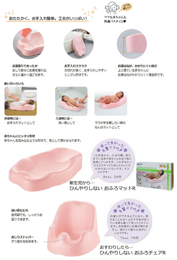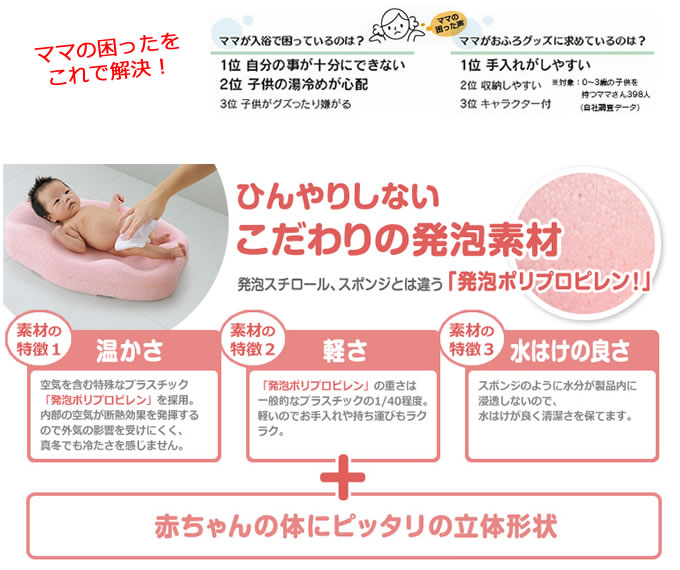 「ひんやりしないおふろマット / おふろチェア」は、保温性のある発泡素材を使用。