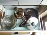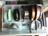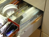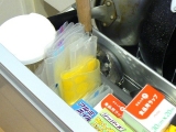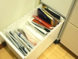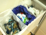 シンクがスッキリしたところで、キッチンの引き出しの収納も見直してみました★今回のテーマは、“袋もの”ショップのビニルバッグや、保冷バッグ、プチプチなどかさばるものは、ゴミ箱の引き出しにここに収納で 2015/09/13