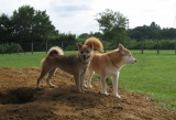 パソコンのモニタが壊れてしまってしばらくネットから遠ざかっておりました〜。980円の中古のモニタをゲットして復活!シルバーウィークは、あまり遠出せず千葉内でおでかけしてました♪まず行ったのは東金にある「松之郷ぶどう郷」いくつかのぶどう園が集まって出来ているのですが、こちらはなんとわんこOKなんですよ色々あってどこにしようか悩んだけど車が停めやすかったので鈴木ぶどう園(才)さんへ。食べ放題じゃなくもぎ取ってお持ち帰りするシステムですが、試食もさせてもらえます!味を確かめた後は、もぎ取りに行きます^^上には紙袋で包まれたぶどうがいっぱい園内にいたおじさんにどれが食べごろか教えてもらって刈り取りました。ぶどうに興味シンシンなきなこさん。でもわんこはぶどう食べちゃダメなんだよね〜ちなみにきなこは果物食べません帰りに泉谷公園に寄ってみました。彼岸花がたくさん咲いてましたよ〜一緒にパチリ☆偶然出会ったMIXのいちごちゃん♪昔山でうろついてたのを保護されたそうです。でもとっても人なつこくてフレンドリーでした持ち帰ったぶどうは巨峰です。小さめの4房で1000円前後でした。甘くておいしかったです別の日、昭和の森公園のフォレストビレッジにBBQに行きました!ここは前も来た事があるんだけど、今回はドッグランができてましたよ〜(受付で申請して利用できます:初回登録200円)適度に木を残してあり日陰ができて暑い日も過ごしやすいかもです^^こっちは小型犬用。どちらも誰も利用してなくて貸し切り状態でした^^;さて早速お肉を焼きますよ〜赤身のお肉はきなこ用。たまには贅沢でも周りに子供がたくさんいたので気になって食いつきはイマイチその後も焼き焼き〜。意外とししゃもがおいしかった最終日は、花の丘公園のランへ。豆柴ちゃんがいました〜リンジーちゃん♪1歳ちょっとでまだまだ遊びたい盛りなリンジーちゃん。きなこの事気に入ってくれたようで何度も誘ってくれますが、年上のプライドもあるのかそんなにカンタンに動かないきなこさんでもちょっとノってきて…少しだけ遊んであげてました^^大きさに注目〜!親子かってくらい体格が違うまた会えたらいいね リッチェル たためるペットサークル 90-90をモニターさせて頂きました♪重さもほとんど感じず折りたたみ式でぺたんこになるので場所も取らないのがすごくいい収納バッグ付きで持ち運ぶのにも便利です。さっそく広げてみました。さっきまであんなにコンパクトだったのに、畳み半畳ほどの大きさに広がりました!屋根と底面を装着。底面はマジックテープ式で、屋根部分はファスナーで閉める感じで止めます。出入り口はファスナーで横に付いてるカラビナで止めれるようになっており、ガリガリやって開けちゃう事もなく安心♪両サイドにはポケットが付いていて、ここにトイレシーツや小物を入れる事も出来て便利。あと、ボトルタイプの給水器(別売り)もセットできるので、少し長い間のお留守番にも使えそうです。ファスナーを開けたら、ロールアップしてマジックテープで留めれる様になってます。初めてのものがコワいきなこさん安心できる場所ってわかってもらうため、おやつをばらまいて慣れてもらう事にしました。最初はまだへっぴり腰で怖々入ってます^^;しばらくそれを繰り返し、「ハウス!」と言ったらちゃんと自分から入ってくれましたちなみにこちらは8kg以下のわんこ対応なんですが、六角形で丸に近いので圧迫感もなく10kgのきなこでもゆったりと入れます♪来月はこのサークルが活躍してくれそう〜楽しみや