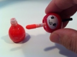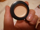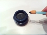 1.アイラインブラシに内容物を少量取って、手の甲で量を調節します。