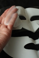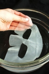 薄いフィルムにゲル状マスクが、形が崩れないように