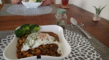 朝早くから、チンカンチンカンとお料理をする音が聞こえてきたけれど本日のゴマちゃんブランチは メキシカン丼粗挽き肉大豆ミックスベジタブルをタコベースで味付けスパイスハーブ類が15種類ほどとチーズなど色々使ったようです最後には半熟卵のせてね!ご飯おかわりしたいほど、美味しかったありが… 2013/07/28