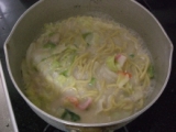冷凍庫に入れておき、食べたい時に簡単煮るだけ 長崎ちゃんぽんです♪ 国産野菜たっぷり!! まずはスープ、野菜、麺の順に煮ていきます ふつうに食べるとこんな感じ お兄ちゃん2歳はそのまま食べます 早く食べたいのに写真待ち「早くしてよ!」 1歳の妹には取り… 2011/12/21