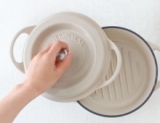 | 手間ひまかけた「メイド・イン・ジャパン」 バーミキュラは安心のメイド・イン・ジャパン。 鋳造工程~精密加工工程~ホーロー工程により それぞれの職人が一品一品を丁寧につくり上げて います。 | ずっと置いて見せたくなるシンプルデザイン 限定色/サンドベージュの『R.STYLE限定オリジナルバーミキュラ』は、お料理をより美味しく見せてくれます。 テーブルやキッチンにそのまま置いておいても、インテリアの一部として魅力的です。 |