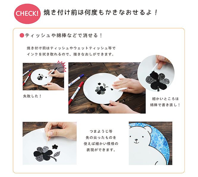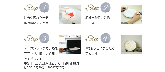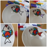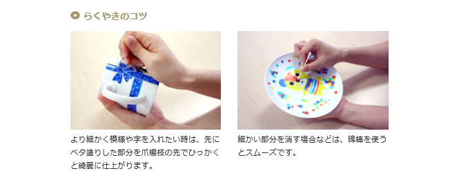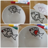無地のお皿に絵やメッセージを書いて、オリジナルデザインのお皿に仕上げることができるらくやきマーカー。