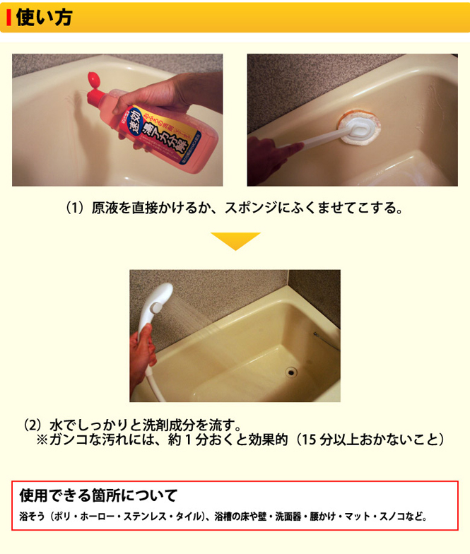 ヌメリや脂汚れをしっかり落とし、泡ぎれもよくすすぎもラクラク! 様々な洗剤を使っても、どうしても落ちなかった浴槽に付着する青い水アカがキレイに落ちた、ヒートポンプ式給湯器を使用されている方々から絶賛の声が上がっている製品です。 レビュー数 : 6 |