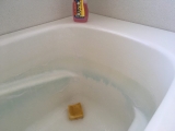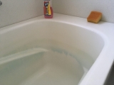 様々な洗剤を使っても、どうしても落ちなかった浴槽に付着する青い水アカがキレイに落ちた、ヒートポンプ式給湯器を使用されている方々から絶賛の声が上がっている製品です。
