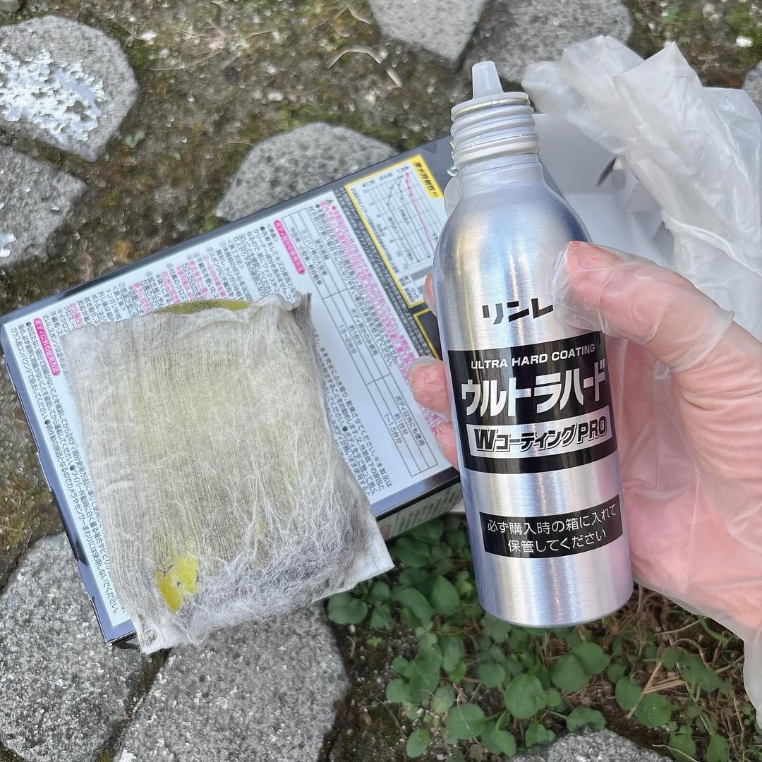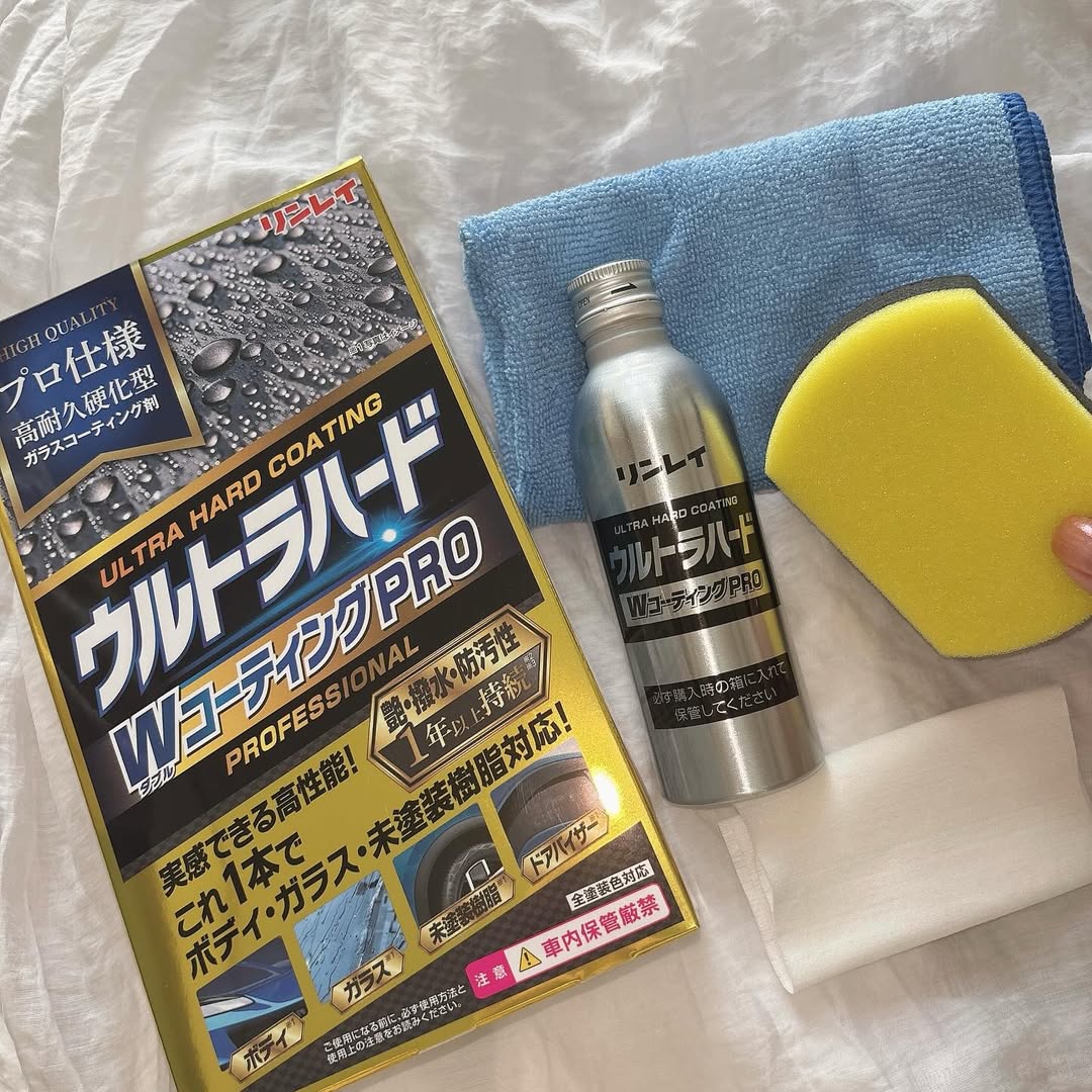 ウルトラハードWコーティングPRO🚗 専門店のコーティングに迫る深いツヤ! 不織布を巻いたスポンジに特殊な液体をつけて塗って、上から付属のタオルで拭くだけ!軽だと液体が余ったので大型車もボディだけなら1つで足りそうです! セルフで簡単にコーティングができました! 被膜ができるような感じで、雨が降ると窓ガラスをすごい速さで弾いていました☔️ 優れた撥水性と防汚性を長期間維持してくれるそう!1年くらいは持つのかな? 雨もですけど、砂ボコり・花粉・黄砂などが 付着しにくくなり、洗車の頻度や手間が減りそうで嬉しいです☺️ ボディー塗装面以外にもガラスや未塗装樹脂にも施工できるので車全体をカバーできました! 車屋さんにコーティングをお願いしようと思っていたタイミングだったのでいい商品と出会えてよかったです🚗 #PR #株式会社リンレイ #自動車 #ガラスコーティング #ホイール #撥水 #コーティング #洗車 #リンレイ #ウルトラハード #ウルトラハードクリーナー #ウルトラハードWコーティングPRO #monipla #rinrei_fan