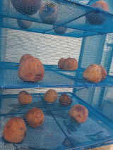 干し柿 少しずつ縮んでいます。 毎日ひっくり返して 毎日ひっくり返さなくてもくっつかないからあまり触らない方がいいのかも。 今日は雨が降るから、お家に入れないといけないね #干し柿#百目#渋柿プロ推奨の超強力洗剤!家中の頑固な汚れを1本で解決!!『ウルトラハードクリーナー 多用途』 モニター募集