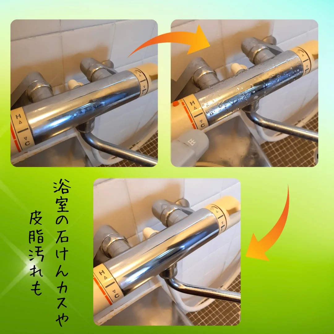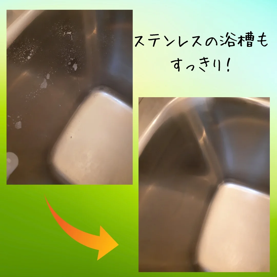 スプレーして拭き取ると、ステンレスの浴槽もピカピカ!